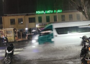Hujan Lebat, Jalan Depan RSUD Datu Beru Berubah jadi Sungai